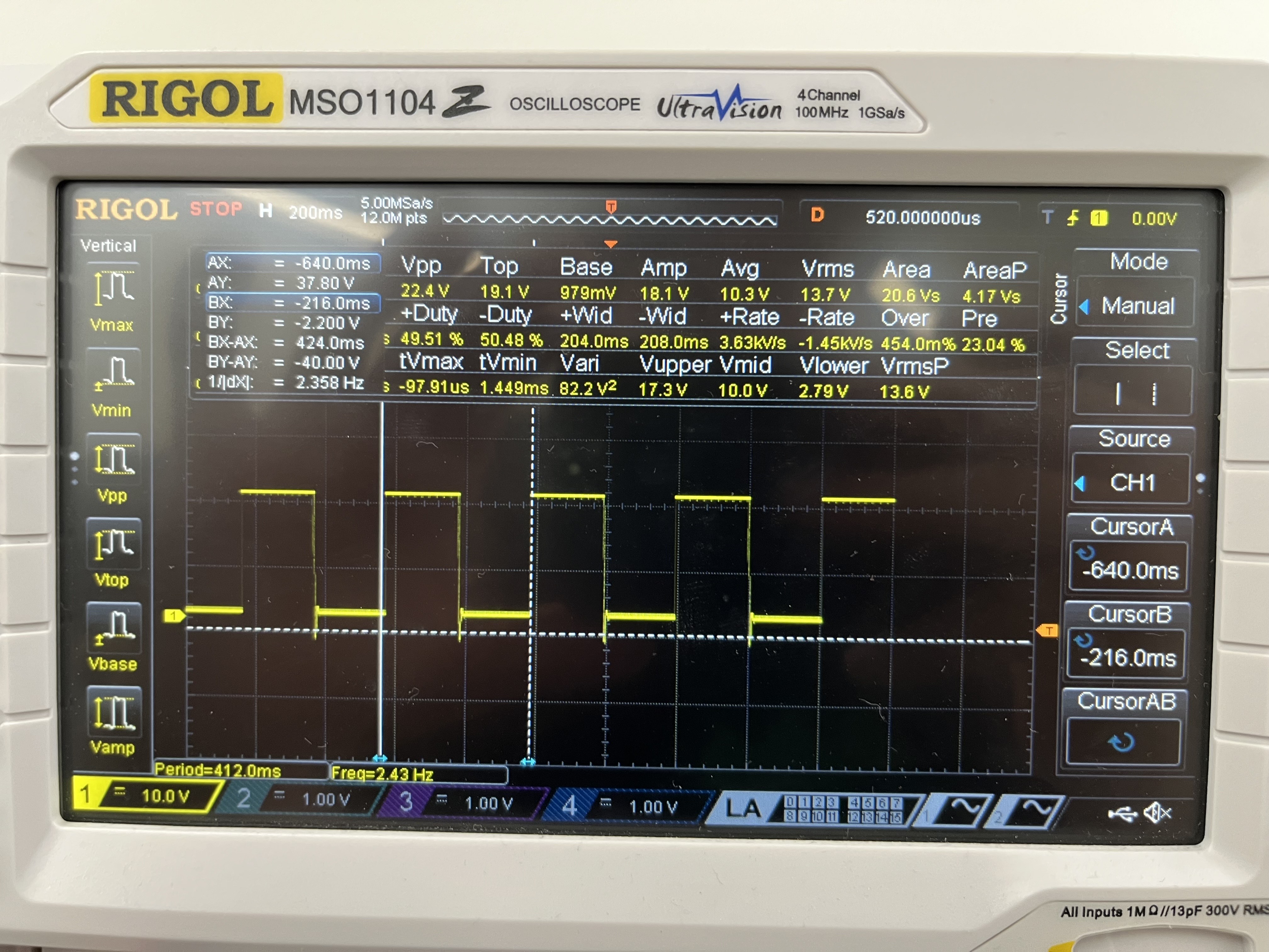 Figure 7 shows the corrent timing of the blinking LED in hardware.