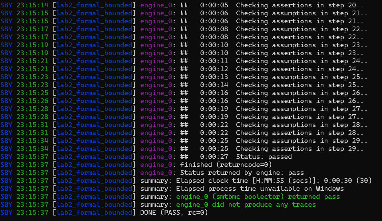 Since this was not covered in formal verification, this portion of the design was verified with a simple testbench simulation.