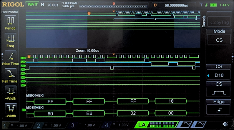For this, I had to write a custom SPI library in C to configure the SPI registers on the MCU and drive data out and read data back.