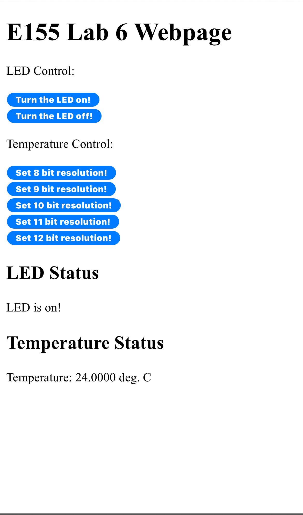 I designed the webpage to have button inputs to configure the number of bits of resolution via an HTTP request in the same way that the starter code turns a LED on and off.